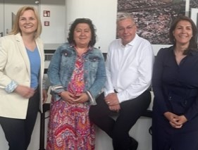 Das Bild zeigt den neuen Fraktionsvorstand mit Sabine Hornberg, 2. stellv. Fraktionsvorsitzende und stellv. Stadtverbandsvorsitzende, Aysegül Winter, Stadtverbandsvorsitzende, Uwe Henkenjohann, Fraktionsvorsitzender, Christina Coban, 1. stellv. Vorsitzende (v.l.n.r.)