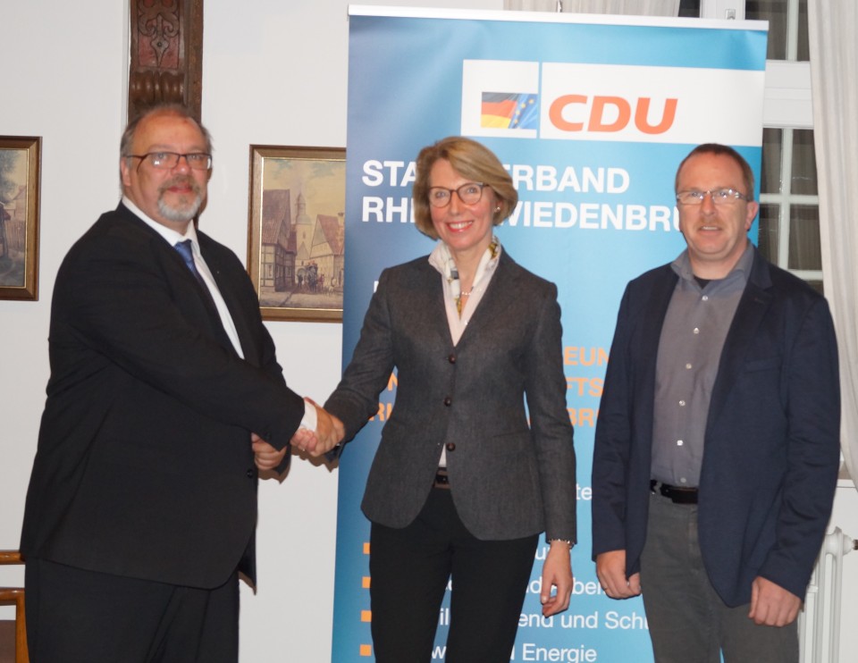 Das Bild zeigt v.l.n.r. Ingo Jackschies (Gutachter), Henrika Küppers (Stadtverbandsvorsitzende), Ralf Harz ( stellv. Stadtverbandsvorsitzender)Herr Dipl. Kfm. Ingo Jackschies (Verfasser des der Stadtverwaltung vorliegenden Gutachtens) analysierte die Situation der niedergelassenen Hausärzte, zeigte die zu erwartende Problematik in unserer Stadt auf und suchte nach möglichen Handlungsfeldern. Klar wurde: Schon heute besteht ein Mangel an Hausärzten! Wer sich also als Hausarzt in Rheda-Wiedenbrück niederlassen möchte, kann von der Kassenärztlichen Vereinigung Westfalen- Lippe (KVWL) Fördermittel erwarten, so Jackschies.